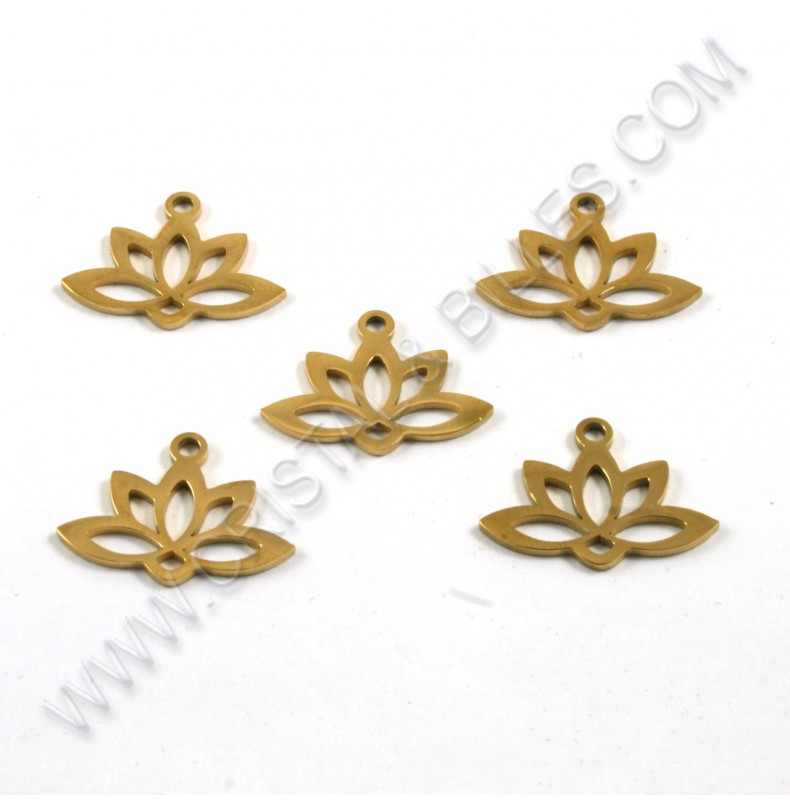 Charm lotus 18x14mm, Stainless gold - Qty : 10