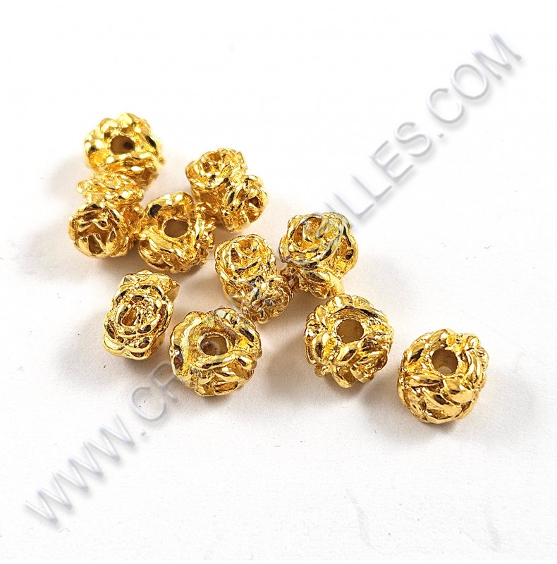 Metal bead flower 7.5x5mm, Gold - Qty : 20