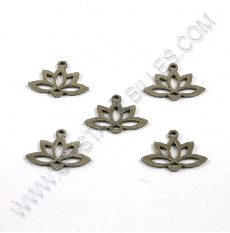 Breloque lotus 18x14mm, Inox - Qté : 10